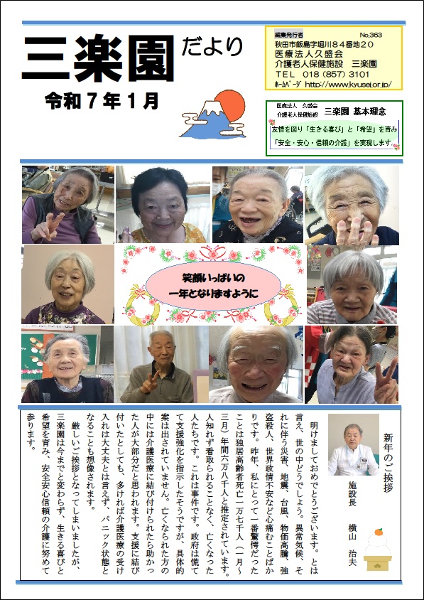 三楽園では、「三楽園だより」を毎月発行しております。内容は、三楽園の行事のご案内や開催報告を掲載しております。 こちらでは三楽園だよりをダウンロードいただけますので、どうぞご利用ください。 また、ご来園の際は、三楽園1階受付横に置いていますので、お手に取ってご覧いただければ幸いです。